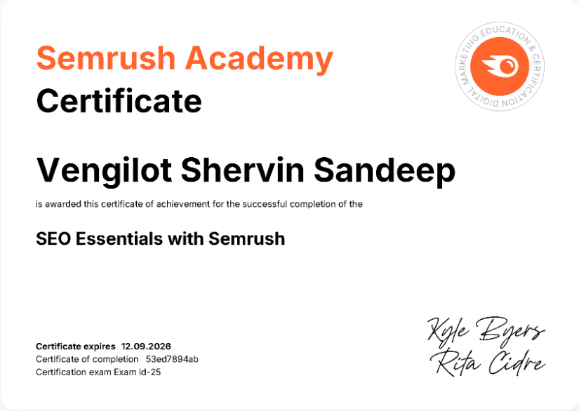 I’m Vengilot Shervin Sandeep, a Top Digital Marketing Strategist in Kannur and business growth specialist dedicated to helping brands scale with strategy, creativity, and purpose. As a Freelance Digital Marketing Strategist in Kannur, I craft tailored digital solutions that drive visibility, engagement, and measurable results.